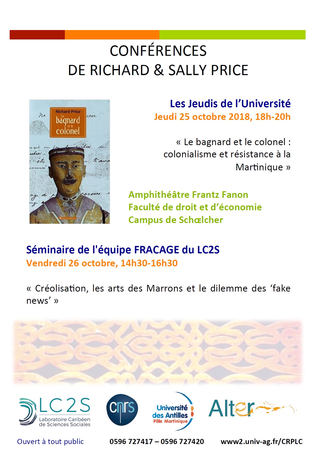 L’équipe FRACAGE du LC2S a le plaisir de vous convier à deux interventions de Richard et Sally Price, toutes deux dans l’amphi Fanon de la Faculté de droit et d’économie de Martinique :