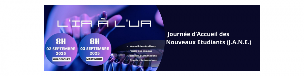 Le 2 septembre 2025, l’université des Antilles organise en Guadeloupe la Journée d’Accueil des Nouveaux Étudiants (JANE) sur ses différents campus. Le 3 septembre, la rentrée se poursuivra en Martinique.