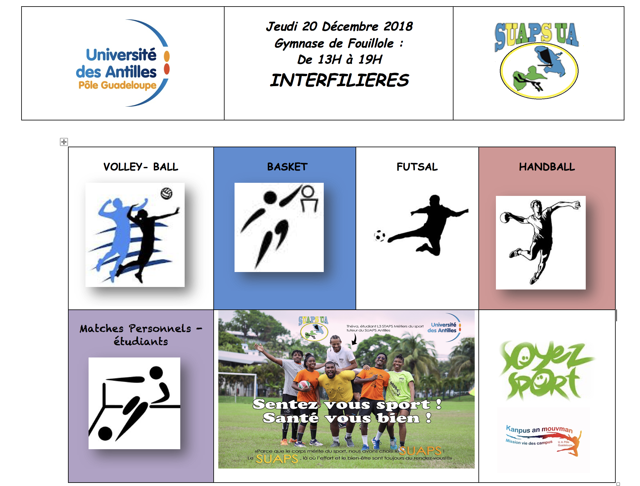 De 13h à 19h, les matches s’enchaineront selon le programme ci-joint, avec un match personnel UA et Étudiants dans chacun des sports collectifs.